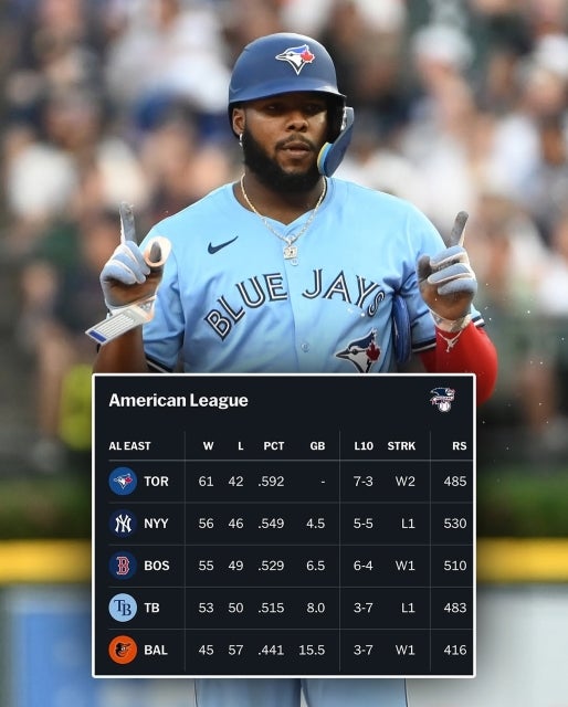 MLBが25日に公式インスタグラム(@mlb)を更新した。【画像】ブルージェイズが17勝4敗の勢いでAL東を完全掌握!「…