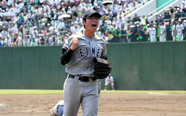 普段は淡々と投げるが、この試合では一球ごとに思わず声が出た。無失点に抑えた回ではガッツポーズも見せた。長打を許さない外角低めの投球は相手打線を翻弄(ほんろう)。五回に本塁打を浴びたが、8回を投げ一度も連打を許さなかった。