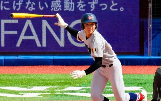 五回表2死二、三塁。「まずは1本」。横浜の池田聖摩(2年)は、落ち着いて低く打つことを意識した。打球は左翼方向へ。6点目の適時打となった。その後、重盗も決まり7点目を追加。東海大相模を引き離した。
