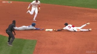お互いが頭から突っ込む!セカンドベースを巡る激アツ攻防戦→即“チャレンジ”にファン大興奮「へソンの1ミリ」「同時に見えるが」 | ABEMA