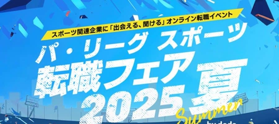 毎年恒例のスポーツ業界の合同転職イベント「パ・リーグ スポーツ転職フェア2025 夏 by doda」が、7月3日、4日の2日間にかけて、オンラインで開催された。パ・リーグ6球団をはじめ、スポーツ関連企業が一堂に会する、中途採用イベント。2018年から毎年開催され、今回で10回目の開催、延べ参加者数6000人を誇る。毎回多数の内定実績があり、本イベントで約100人がスポーツ業界に採用され、転職を実現している。