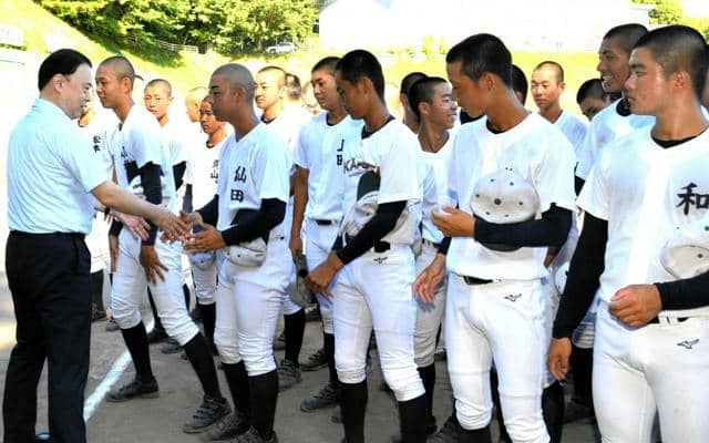 丸山知事は同校の野球場で練習を見学した後、選手らを前に「夏の甲子園、強豪校ばっかりだと思いますが、みなさんの力を結集して勝ち抜いて日本一を目指して頑張ってください」とエールを送った。