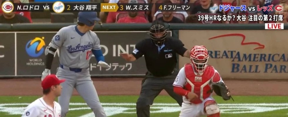 3回表、ドジャースの攻撃でのことだ。1死一塁の場面でこの日の第2打席を迎えた大谷は、レッズの先発ロドロ投手と対戦。第1打席は空振り三振に終わった相手に何とか食らいついていきたかったものの、この打席でも簡単に2ストライクを取られ、外角低めに外れたボールを見逃し、カウントは1-2に。