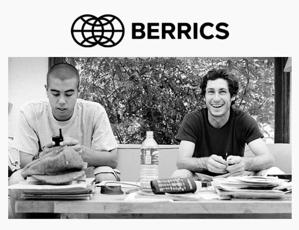 2007年に伝説のプロスケーターEric KostonとSteve Berraによって立ち上げられたロサンゼルス発のスケートボードコンテンツやWeb メディアを中心としたカルチャー・クリエイティブ集団。THE BERRICSは北米を中心に若年層からの人気を博しており、ユースカルチャーの中心でも注目を集める。その多大な影響力は、スケートボード文化の域を超え、ファッション、音楽、ゲーム、アートにまで及び、世界のスケートボード界を牽引し続けている。