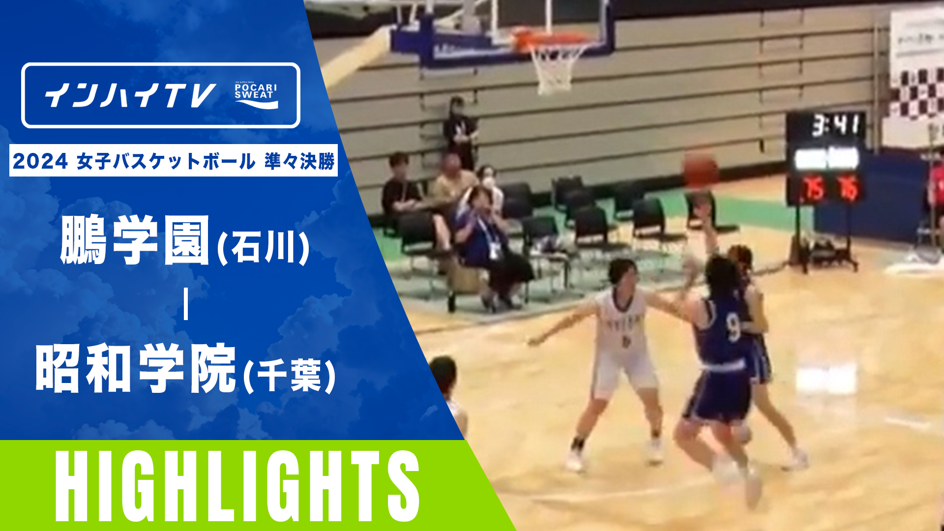 バスケットボール 女子 準々決勝 鵬学園(石川) x 昭和学院(千葉)【インハイ2024ハイライト】 | インターハイ(インハイ.tv)