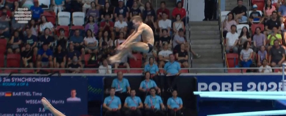 メダルを狙ってリスク承知で挑戦した演技も、まさかの大失敗に会場が静まり返った。「世界水泳シンガポール2025」17日目…