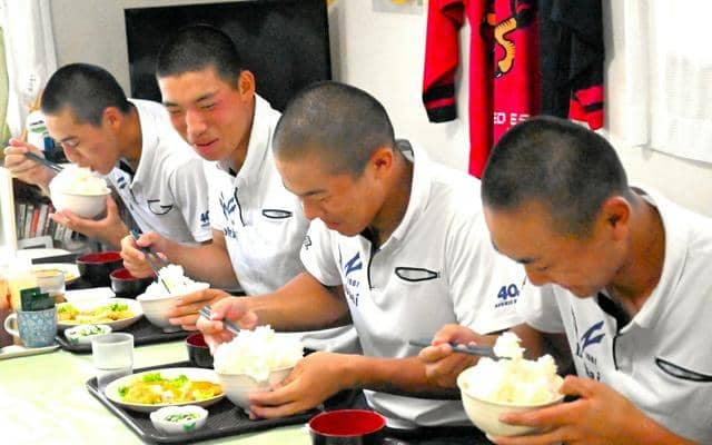 人気メニューはからあげやハンバーグ。夏は冷しゃぶの評判がいい。冷しゃぶ好きの桜井悠也選手(3年)は、もともと体が細く、あまり食べられなかった。しかし、寮生活で1年生時から約16キロ増量し、体力や走力、打力の向上につながった。「最初はキツかったけど、おいしいし、栄養がしっかり考えられているので、食べられる量が増えました」