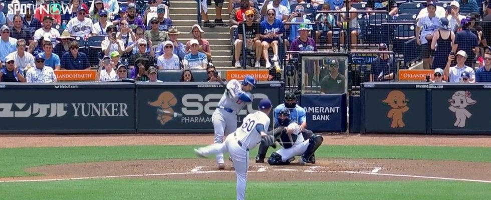 塁上で思わずニンマリするような会心の当たりだった。ドジャースの大谷翔平投手はこの日のレイズ戦に「2番・DH」で先発出場を果たすと、第3打席でライト前ヒットを放って出塁。この時の当たりを二塁ランナーのロハス内野手が眺めていた際の表情が注目を集めた。