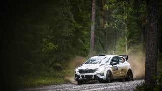 TGR WRCチャレンジ3期生として、2025年WRC第9戦フィンランドに挑んでいる後藤正太郎。昼のサービスにダメージを…
