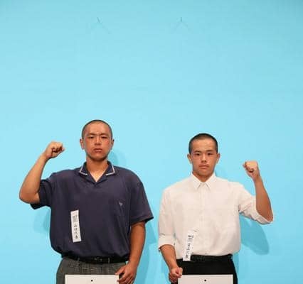 抽選会場には、出場49校の選手、監督が集まり、熱気に包まれた。ステージの幕が上がると、トーナメント表の前に並んだ主将たちが予備抽選の順番に抽選に臨んだ。未来富山の松井清吾主将(3年)は46番目にくじを引き、相手が決まった。