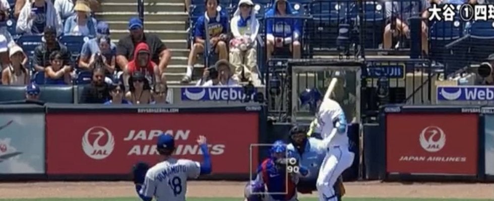 4回裏・レイズの攻撃、1死一塁の場面で打席に立ったのは、この日は5番へ抜擢のキム・ハソン。そのキムに対して山本は、インコース中心の組み立てで、あっさりと3球でカウント1-2と追いこむと、注目の4球目は内角いっぱい、近いところを突く形で投じた145km/hのスプリット。これをわずかに内へと外れたと思ったのか、打席のキムはボールからよけるように見送ったものの、球審のジャッジはストライク。すると、まさかの見逃し三振となったキムは、驚きと落胆が入り混じった様子で、天を仰ぐこととなった。