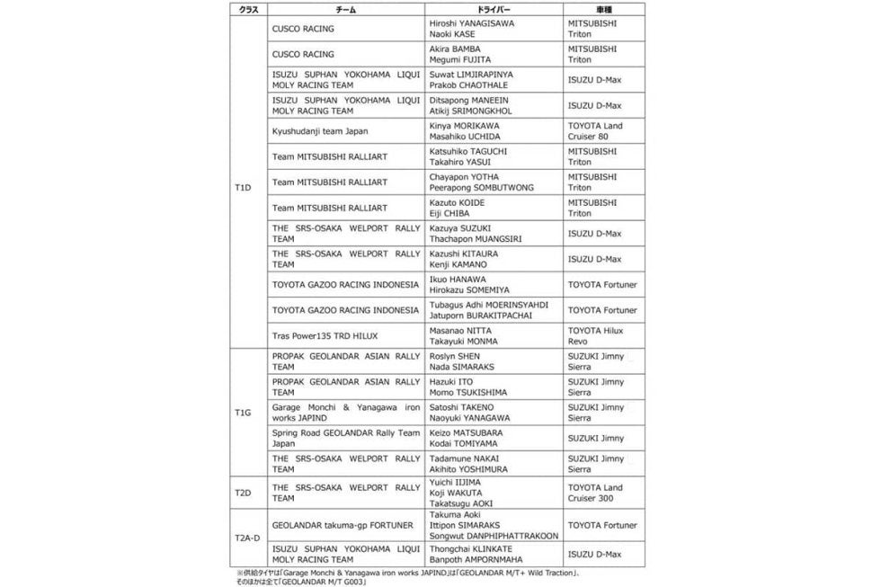 「チーム三菱ラリーアート」「TOYOTA GAZOO Racing Indonesia」を含む