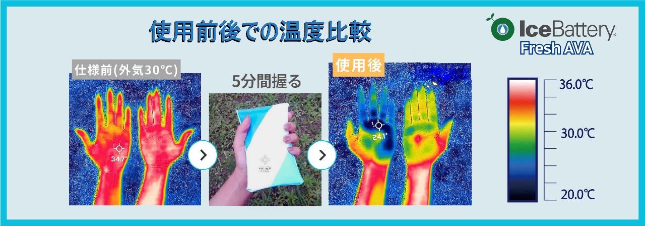 アルフレッサが提供する特殊冷却パックは、冷却に最適とされる10〜15℃を長時間キープ。通常の保冷剤は冷えすぎるため、タオルに包むなどの工夫が必要でしたが、このパックは手のひらに直接当てても冷却効果が高く、安全です。