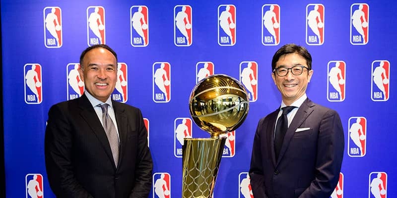 (左から)マーク・テイタムNBA副コミッショナー兼最高執行責任者(COO)、齋藤武NTTドコモ代表取締役副社長