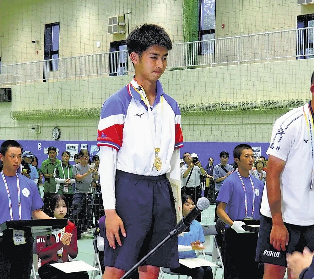 【写真】表彰式で笑顔を見せる蒲選手(7日、山口県岩国市で)