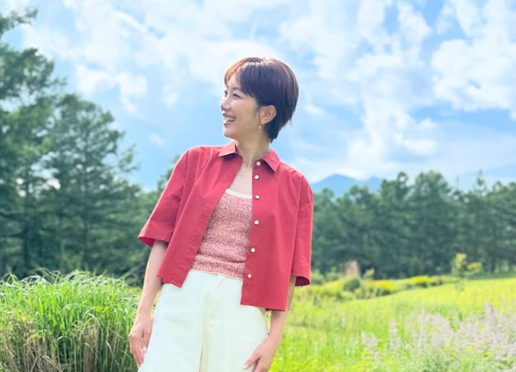 爽やか!潮田玲子が山梨で夏休み撮影、笑顔あふれる赤シャツコーデ披露 | 話題の投稿