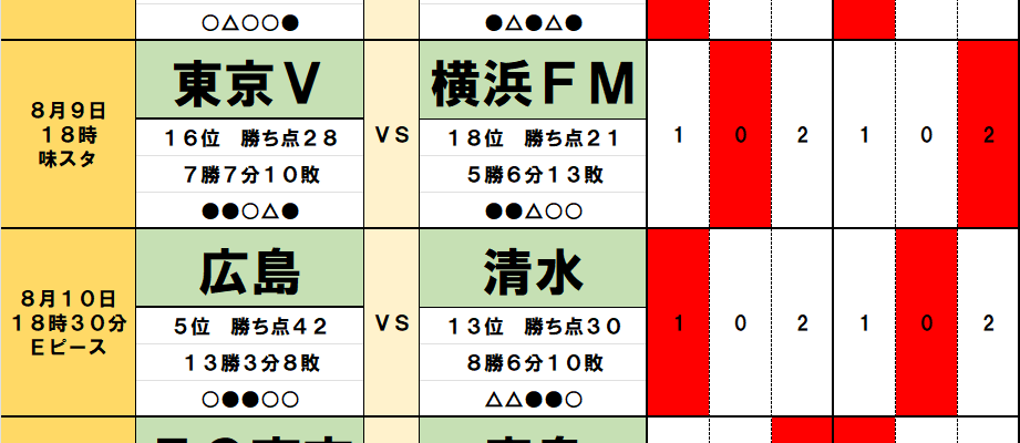 今回のtotoの購入締切は8月9日で、ネット決済による公式サイトでの販売は17時50分(コンビニ決済は16時)、くじ売り場では12時、コンビニは11時30分までとなっている。