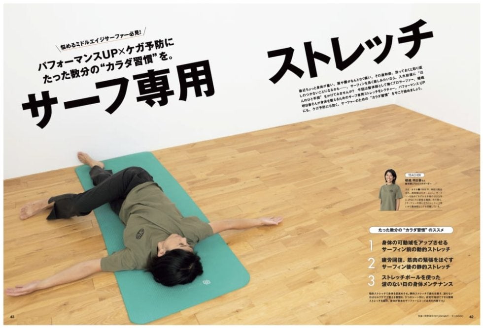 今回は整体師として働くプロサーファー、嵯峨明日香さんが身体を整えるためのサーフ専用ストレッチをレクチャー。パフォーマンスUPにも、ケガ予防にも効く、サーファーのための“カラダ習慣”を今こそ始めよう。