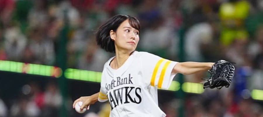 タレントの新谷あやかさんが始球式■ソフトバンク ー 日本ハム(9日・みずほPayPayドーム) インスタグラムフォロワー…