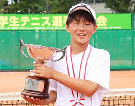 全国の小学生が日本一を競う第43回第一生命全国小学生テニス選手権(東京/第一生命相娯園テニスコート、レッドクレー)は9日、男子シングルス決勝が行われ、第1シードの安居院咲空(青山小学校)が第7シードの藤瀬大智(大庭小学校)を6-2, 6-1のストレートで破り優勝を飾った。