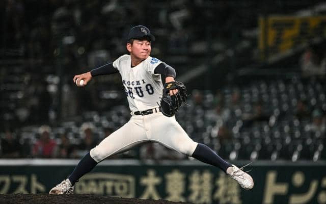 1点リードで迎えた八回表1死三塁。高知中央のエース松浦伸広投手(2年)にようやく出番が来た。先発の堅田徠可(くうが)投手(2年)から継投して4人目の登板だった。