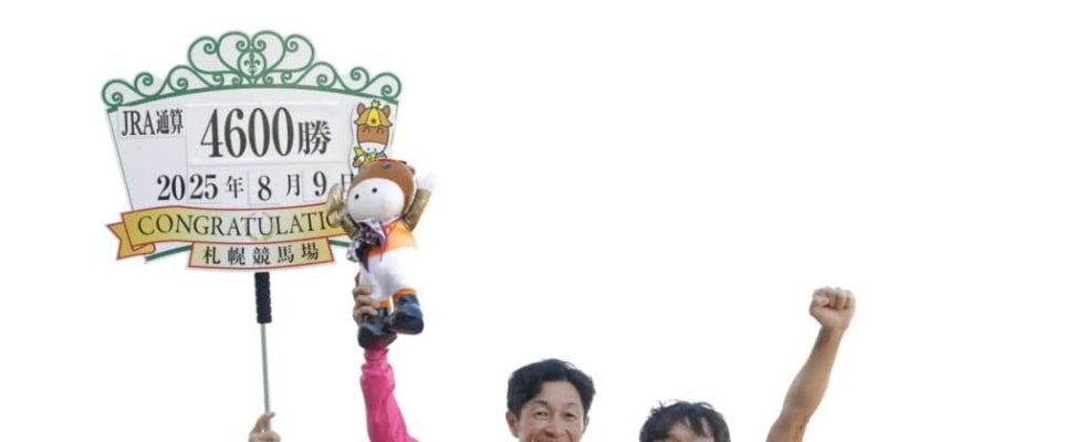 「(JRA通算4600勝を達成して)40年近く乗っていますが、あっという間という気持ちの方が強いです。本当にいろいろな馬と関係者に恵まれてここまできたので、周りの方たちのおかげだと思っています。今日、絶対に達成しなくてはと思っていて、ほっとしました。(4500勝からの100勝を振り返って)良い馬にたくさん乗せてもらえましたし、中身の濃いレースもあったので、良い100勝だったと思います。ただ、これからの方が大事なので、また頑張りたいですね。1つ勝つのも大変な中、多くの馬と関係者が1勝を目指して毎日仕事しているので、(4600勝は)本当に重みを感じる数字です。札幌開催初日から本当に多くのお客様に競馬場に足を運んでもらっていて、本当に仕事のしがいがありますし、騎乗していてやはり励みになります。僕自身も良い夏にしたいと思っているので、札幌競馬後半も頑張りたいですね。いつも応援していただきありがとうございます。もっともっと勝利を重ねていきたいと思いますので、また応援してください」