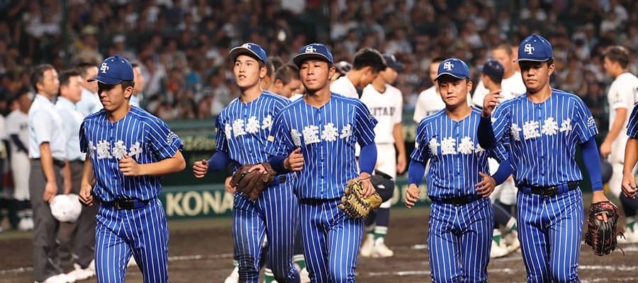 ド派手な青ユニホームだけでなく、高校名も話題に。「読み方も字面もカッコいい!」「青藍泰斗……初めて聞いた」とコメントが集まった。(Full-Count編集部)