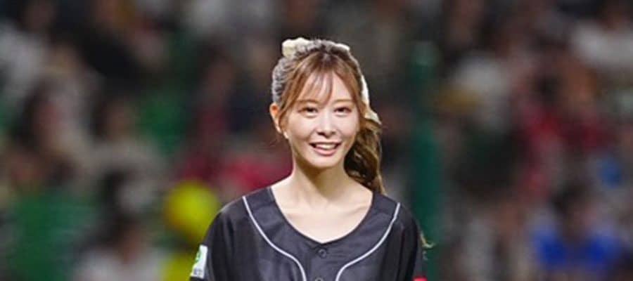 ポニーテールを白いリボンで結び、黒のソフトバンクのユニホームに、グレーのショートパンツ姿でマウンドへ。四方に頭を下げて挨拶した後、大きく振りかぶって投げた。惜しくもワンバウンドになったものの、コースは外れることなく捕手のミットに収まると、再び頭を下げて笑顔を見せていた。