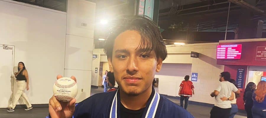 ドジャーズ・大谷翔平の42号球を入手したジョーイ・ララくん【写真:真柴健】