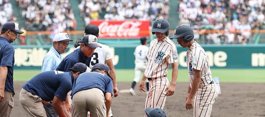 甲子園騒然、東大阪大柏原でアクシデント 足の痙攣か…歩けず担架で退場、球場は拍手