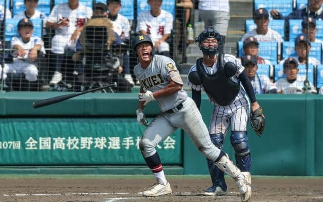 高校通算31本目となる甲子園での一発。「憧れの舞台で打てて、これまでで一番うれしい」と笑顔を見せた。
