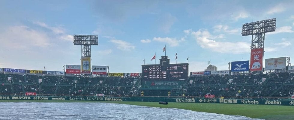 5回終了後、選手達がベンチに退くとグラウンドにはシートがかぶさった。雨粒も大きくなり、甲子園付近では雷も鳴り、