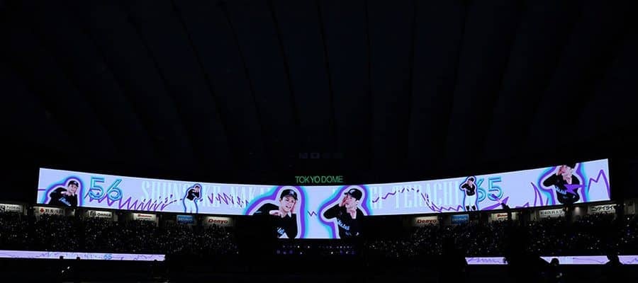 会場が暗転し音楽が流れると、バックスクリーンにロッテの選手の映像が登場。プロ顔負けの動きで音楽に合わせて踊る姿に、ファンからは驚きと歓声が上がった。
