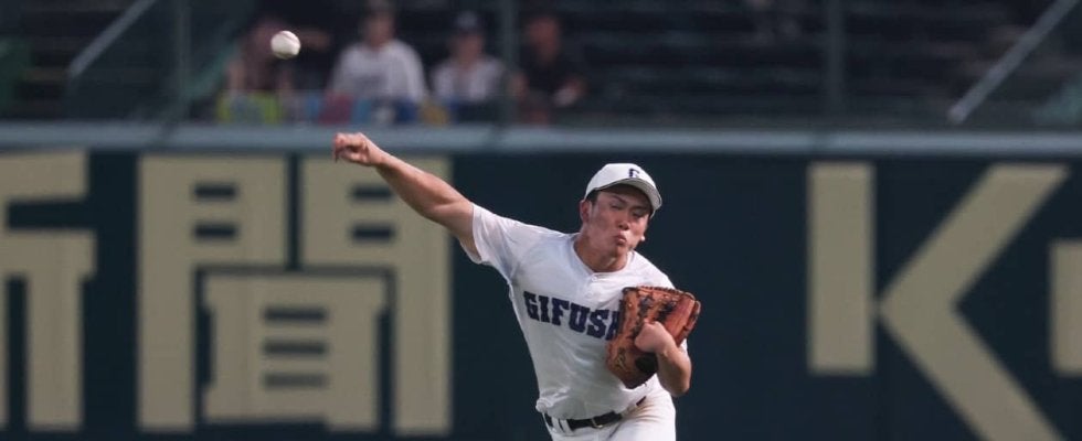 生まれつき左手の指がないハンディを抱えている県岐阜商の横山 温大外野手(3年)が5回にライトから鋭い返球を見せた。