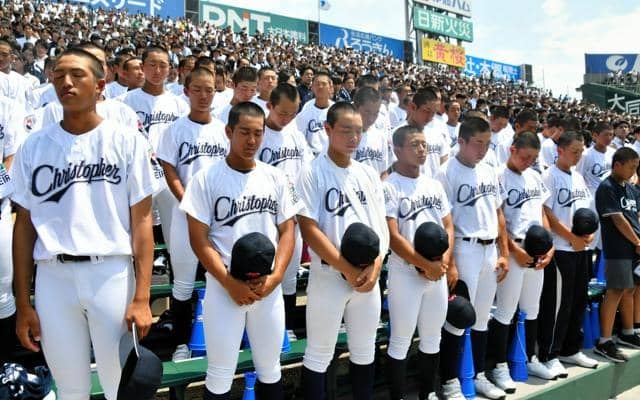終戦の日のこの日、試合開始直前の正午には、サイレンにあわせて応援団全員が立ち上がって黙禱(もくとう)をした。(滝沢貴大)