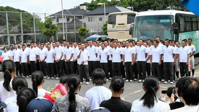 学校に戻り、応援に感謝して熱戦を報告する聖隷クリストファーの選手たち=2025年8月16日午後1時28分、浜松市中央区、青田秀樹撮影