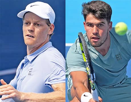 両者は過去13度対戦しており、アルカラスから8勝5敗。今季は3度対戦していて、5月のBNLイタリア国際(イタリア/ローマ、レッドクレー、ATP1000)と6月の全仏オープン(フランス/パリ、レッドクレー、グランドスラム)の決勝ではアルカラスが、7月のウィンブルドン(イギリス/ロンドン、芝、グランドスラム)の決勝ではシナーが勝利している。