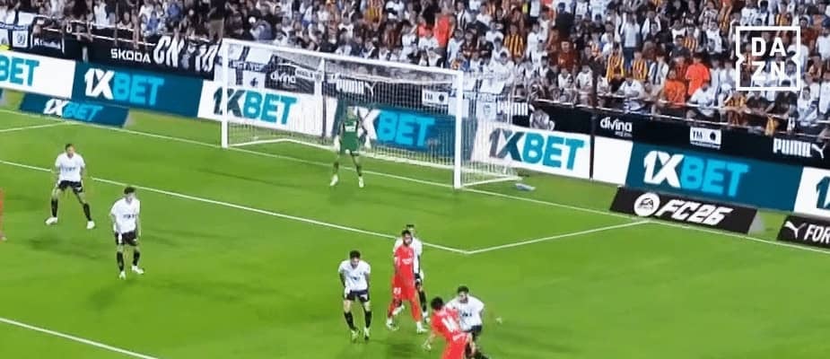 ガヤを筆頭にバレンシアの選手たちが久保への警戒を強める中で、最後は逆サイドのFWアンデル・バレネチェアへとパス。ボールを受けた23歳のウイングは巧みな足裏でのコントロールからフィニッシュに持ち込んだ。