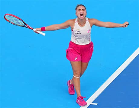 今大会は初戦の2回戦で世界ランク65位のM・サッカリ(ギリシャ)、3回戦で第26シードのA・クルーガー(アメリカ)、4回戦で同80位のB・クレチコバ(チェコ)、準々決勝で第2シードのC・ガウフ(アメリカ)を下し準決勝に駒を進めた。
