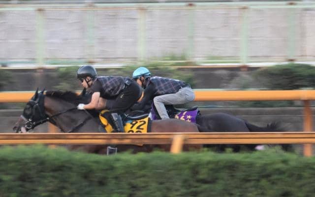 ルシフェルが最後の直線に向いて、しっかりと加速すると、こちらもそれに呼応して加速。内から前に並びかけていくが、相手の手応えも楽なので、なかなか追い抜くことはできない。ただ、簡単に先着することが追い切りの意図ではないため、ルシフェルと併せているというところがあるので、最後まで同入だったところに問題はない。