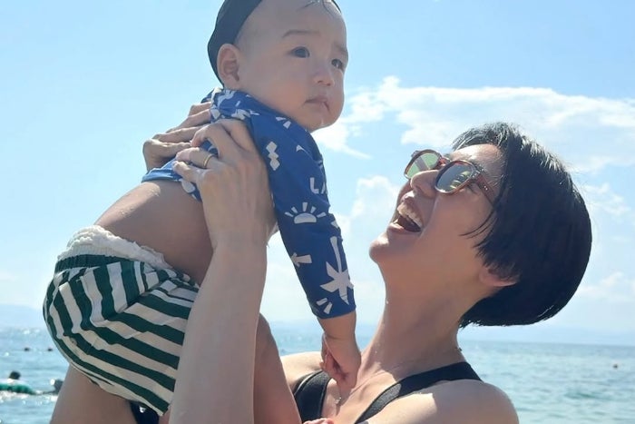 見ているこちらも浄化されます!栗原恵、息子と海を満喫!!
