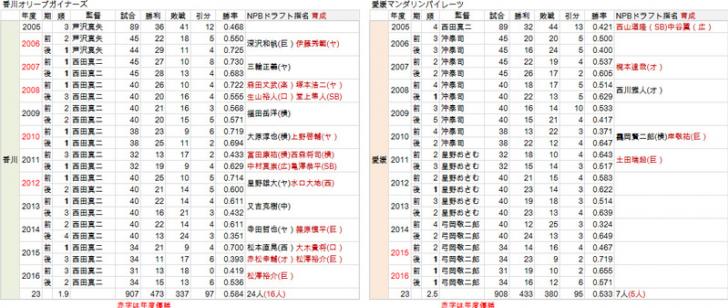 香川オリーブガイナーズは最も優勝回数が多い。勝率も群を抜いている。