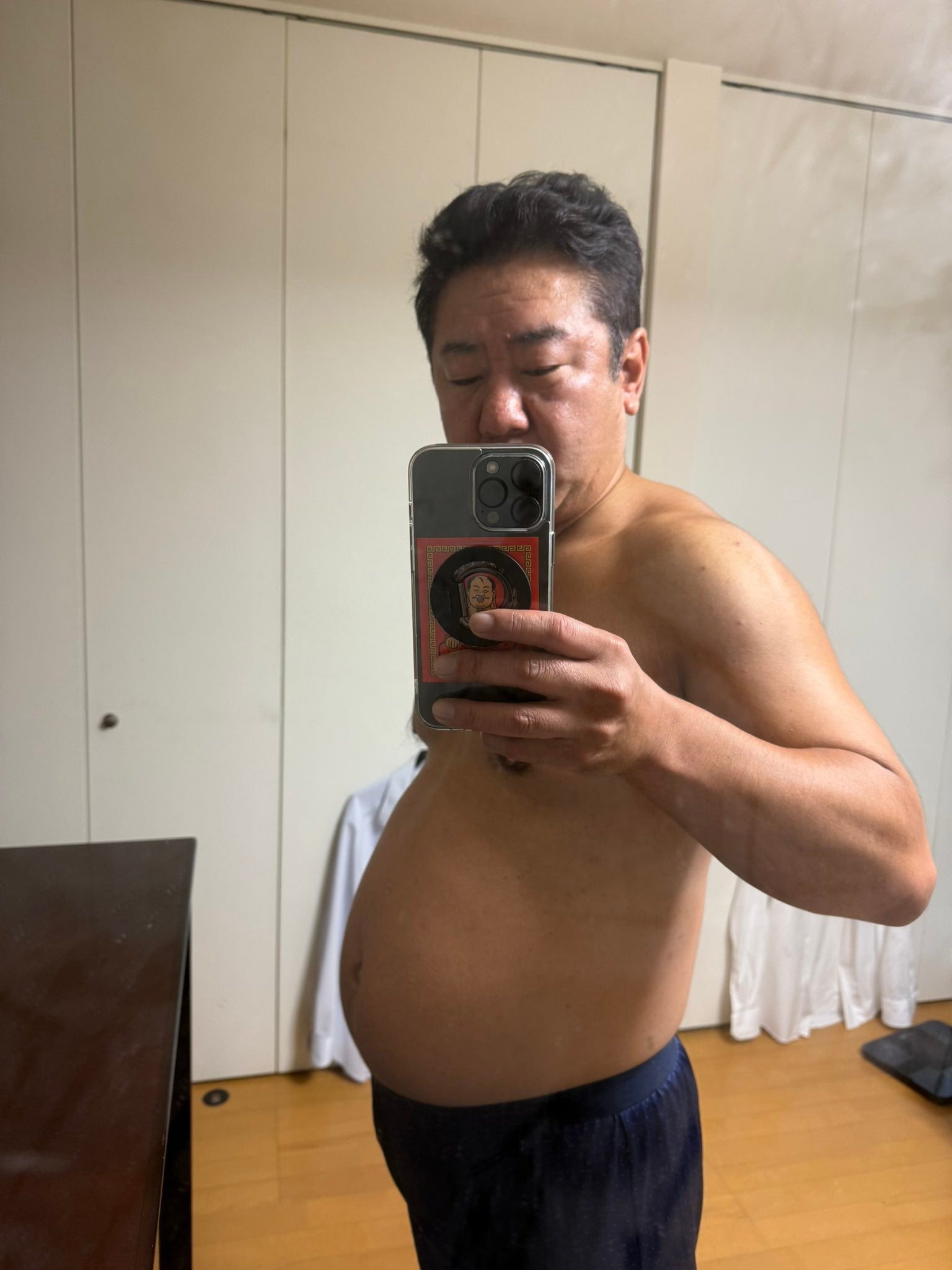 【画像】約11か月ぶりのインスタ投稿が話題⁉錦鯉・渡辺、半裸ショット公開「体重84.85kg 体脂肪率27.5 BMI30.1」