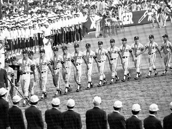 1984年夏、決勝でPL学園を下し初優勝を成し遂げた取手二ナイン