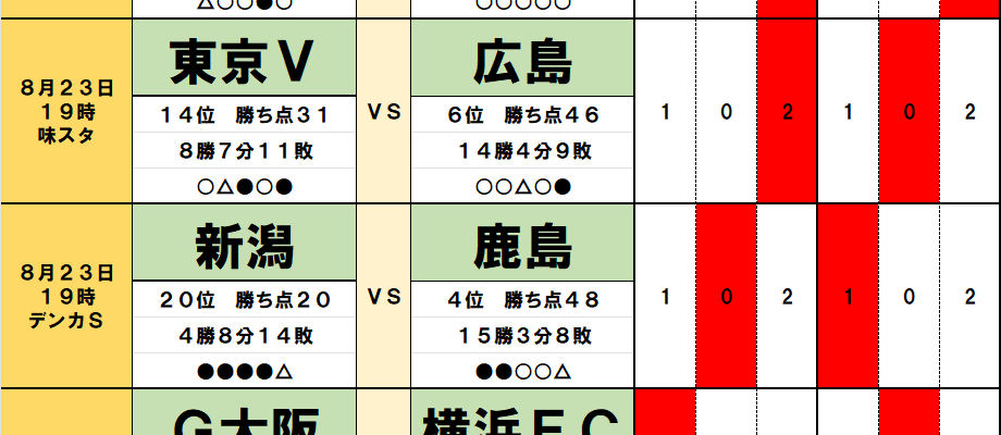 今回のtotoの購入締切は8月23日で、ネット決済による公式サイトでの販売は17時50分(コンビニ決済は16時)、くじ売り場では12時、コンビニは11時30分までとなっている。