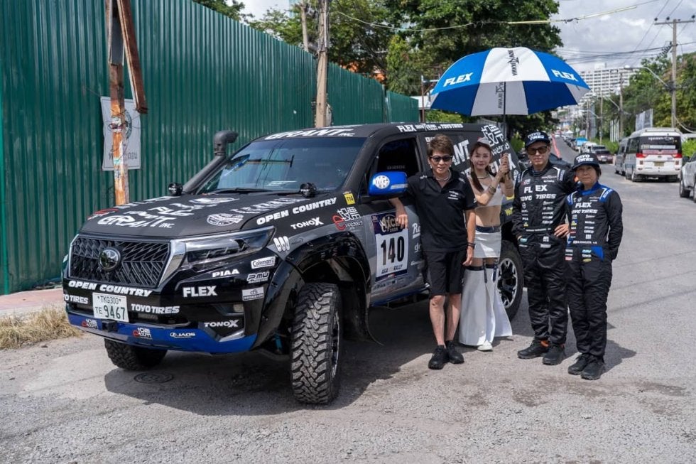 俳優 哀川翔が総監督を務める「e投票 FLEX SHOW AIKAWA Racing with TOYO TIRES」(Driver山崎元彰 Co Driver 中田昌美)TOYOTA LANDCRUISER 150PRADO FLEXラリーSPEC(140号車)は、8月8日(金)から16日(土)の9日間、タイ PATTAYA-Prachinburi - Khao Yai-PATTAYAの3250kmに及ぶアジアクロスカントリーラリーAXCR2025 30th.Anniversary 記念大会に参戦し、幾多の困難を乗り越えT1Gクラス4位で完走を果たしました。