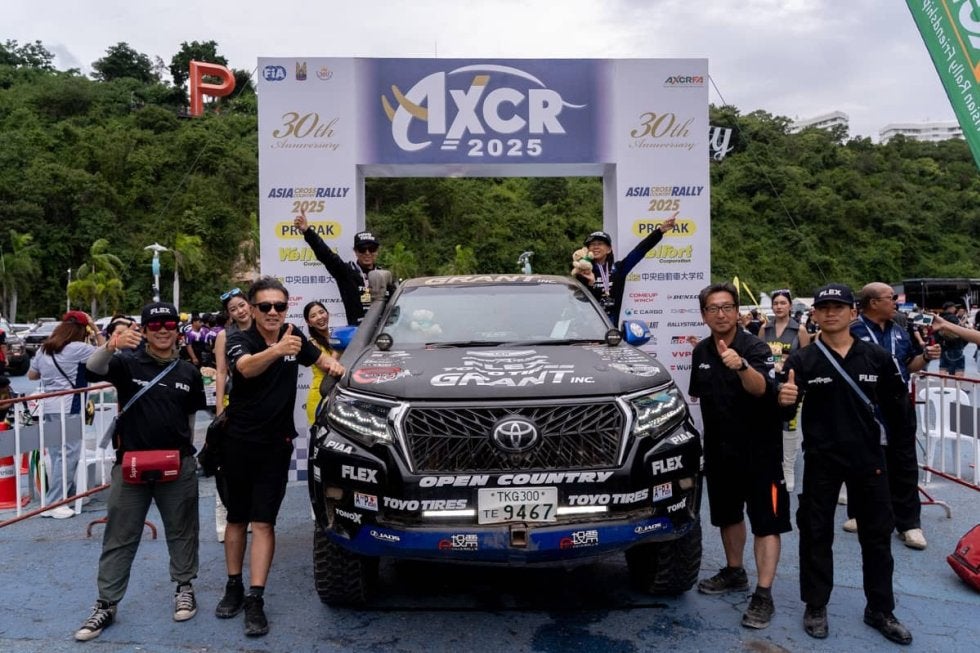 8月16日にフィニッシュを迎えたアジアクロスカントリーラリー(AXCR)2025、にTOYOTA LANDCRUISER 150PRADO FLEXラリーSPECを参戦させたe投票 FLEX SHOW AIKAWA Racing with TOYO TIRESの山崎元彰/中田昌美は、T1Gクラス4位でフィニッシュを果たした。パタヤで行われたセレモニースタートから、各レグごとにレポートを伝えている。