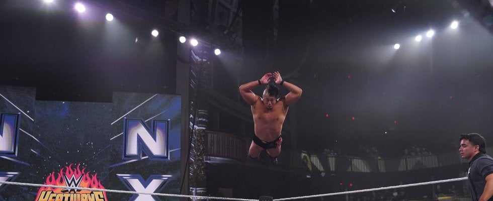 そんな稲村は日本時間8月19日に開催されたNXTにて、ブリックスとストリートファイトに挑む。試合中盤に稲村が大技を繰り出した。ブリックスがテーブル上で顔面血まみれで仰向けに。好機だと捉えた稲村はコーナー最上段まで登ると、勢いよくフロッグスプラッシュを見舞う。テーブルは見事に真っ二つとなった。