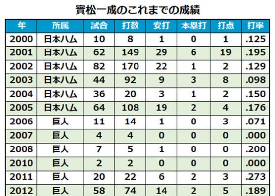 實松は1998年のドラフト1位で佐賀学園高から日本ハムに入団。2006年にトレードで巨人に移籍した。2球団で通算510試合に出場し、打率.166、20本塁打、58打点。今季は14試合に出場した。