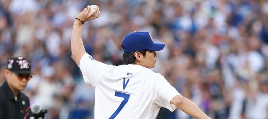 人気グループ「BTS」のVさんが25日(日本時間26日)、ドジャースタジアムで行われるドジャース-レッズ戦の始球式に登場。ファンからは大歓声が起こった。捕手役は山本由伸投手が務め、ノーバウンド投球に大きな拍手が送られた。